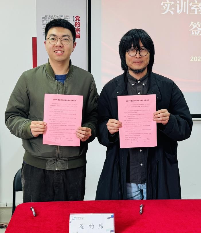 会上,学院与实训室负责人代表、造型基础(附中美术)教研室教师陈策签订《设计学院实训室安全责任书》,全体教职工签订《师德师风承诺书》。