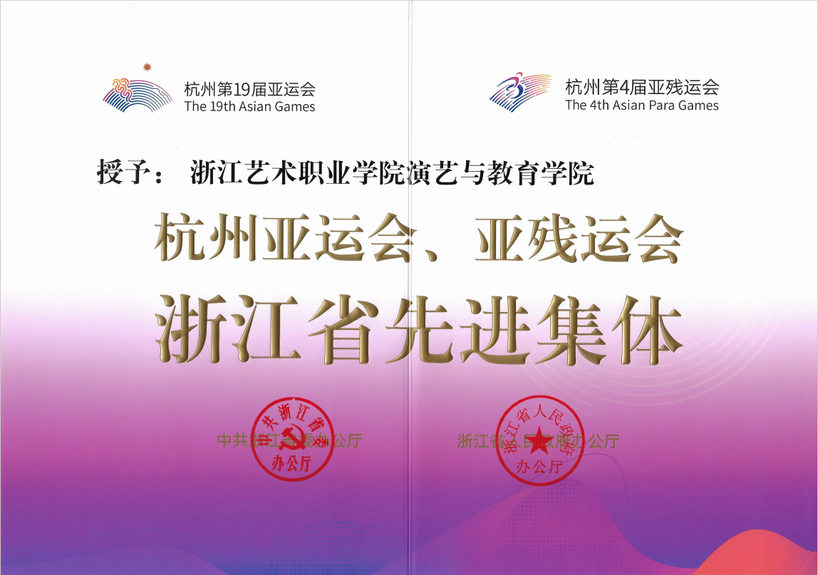 演艺与教育学院荣获杭州亚运会、亚残运会浙江省先进集体称号.png