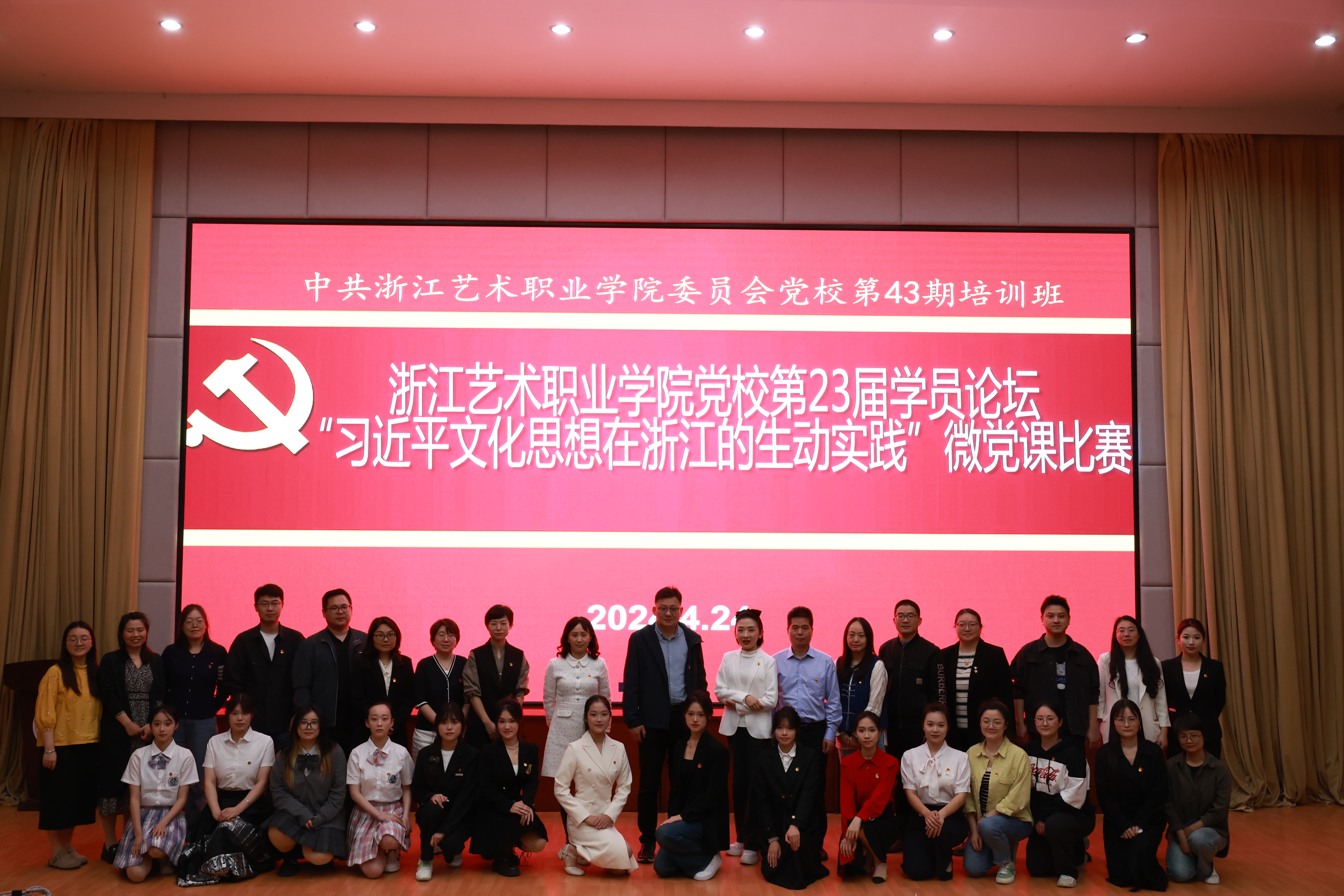比赛中,12名选手紧紧围绕“习近平文化思想在浙江的生动实践”这一主题,以小人物承载大情怀、小话题阐释大主题、小故事阐述大道理的方式,结合PPT、图文、短视频等形式,用慷慨激昂的宣讲、娓娓道来的深情,展现了新一代浙艺青年牢记嘱托、感恩奋进、践行发展的使命担当,赢得在场观众的阵阵掌声。周应中从比赛很精彩、很感动、很期待三个方面进行点评,他高度评价了此次微型党课比赛主题聚焦又丰富、思路既清晰又活泼、视角既年轻专业,感动于参赛团队与保障团队所付出的辛苦努力,也从进一步创新导入策略、清晰叙事线索提出了期许,鼓励党校学员继续讲好浙江优秀传统文化创造性转化、创新性发展的故事,讲好古往今来浙江文化与世界文明交流互鉴、共同繁荣的故事,真正“习近平文化思想在浙江的生动实践”真正内化于心,外化于行。