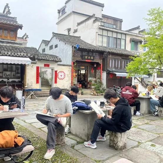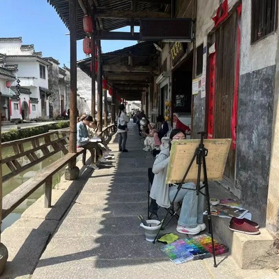 为提高学生观察和认知能力,激发创作思维,在自然中积累视觉元素,深入感受新时代乡村之美,一年一度的采风写生实践活动如期而至。此次采风写生实践活动是《校内外岗位实践》程的具体践行,由动漫设计专业教师吴炜栋、汤厉昊、张梅芳、毛欣玥,环境艺术设计专业教师周益、刘馨蕾、沈熠铭、蒋杰8位教师带队,2023级动漫设计专业和环境艺术设计专业4个班级153名学生赴安徽歙县,进行为期一周的采风写生实践活动。
