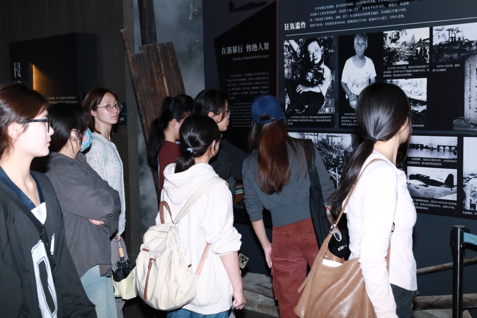 踏入纪念馆,庄严肃穆的氛围扑面而来。师生们在展厅中缓缓前行,从淞沪会战的硝烟弥漫,到浙江本土抗日力量的顽强坚守,每一个历史场景的呈现,都像是一记重锤,叩击着大家的心灵。在受降仪式的还原场景前,众人久久伫立,见证那来之不易的胜利时刻,而这份正义的实现,离不开无数仁人志士前赴后继的奋斗与牺牲。